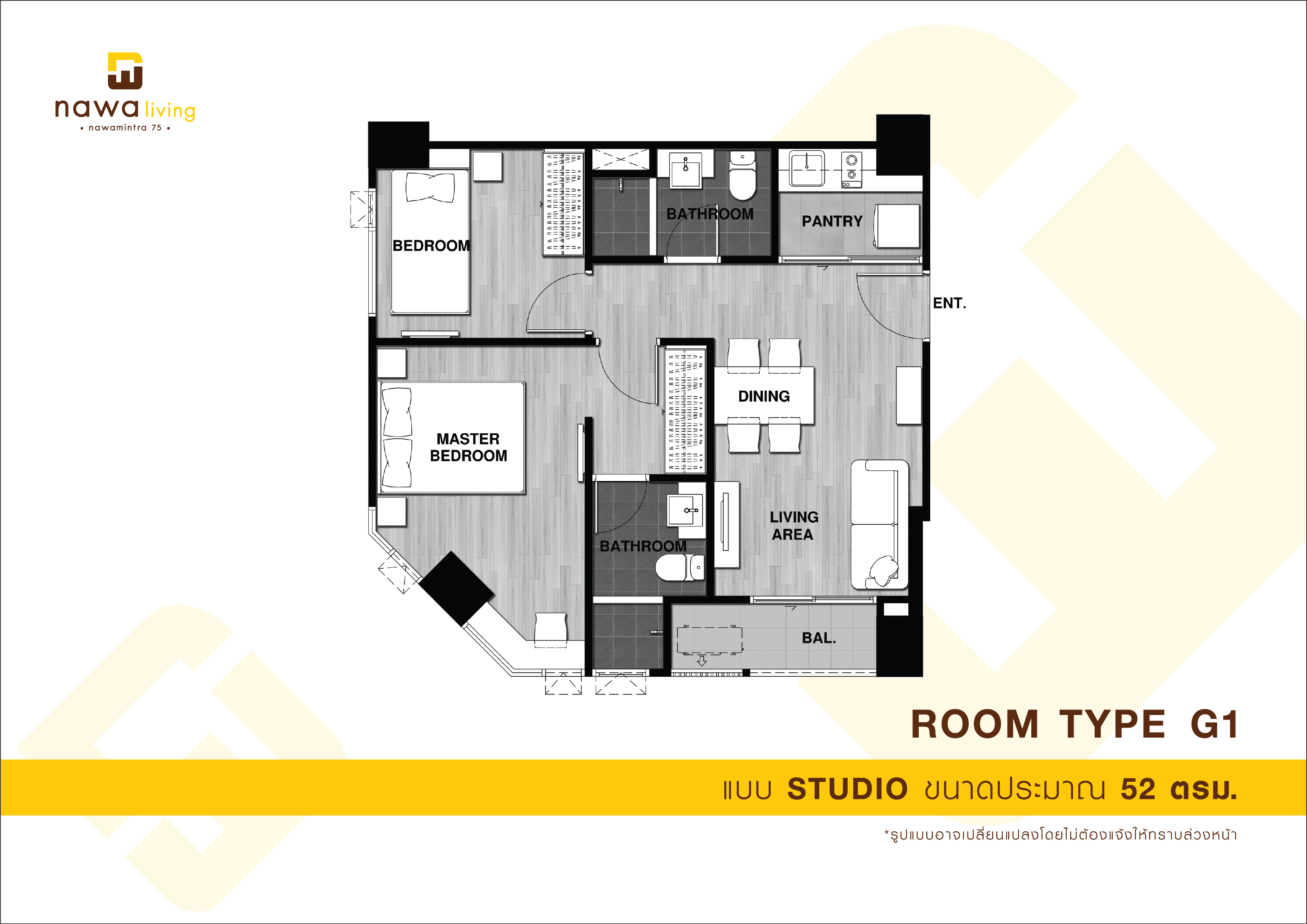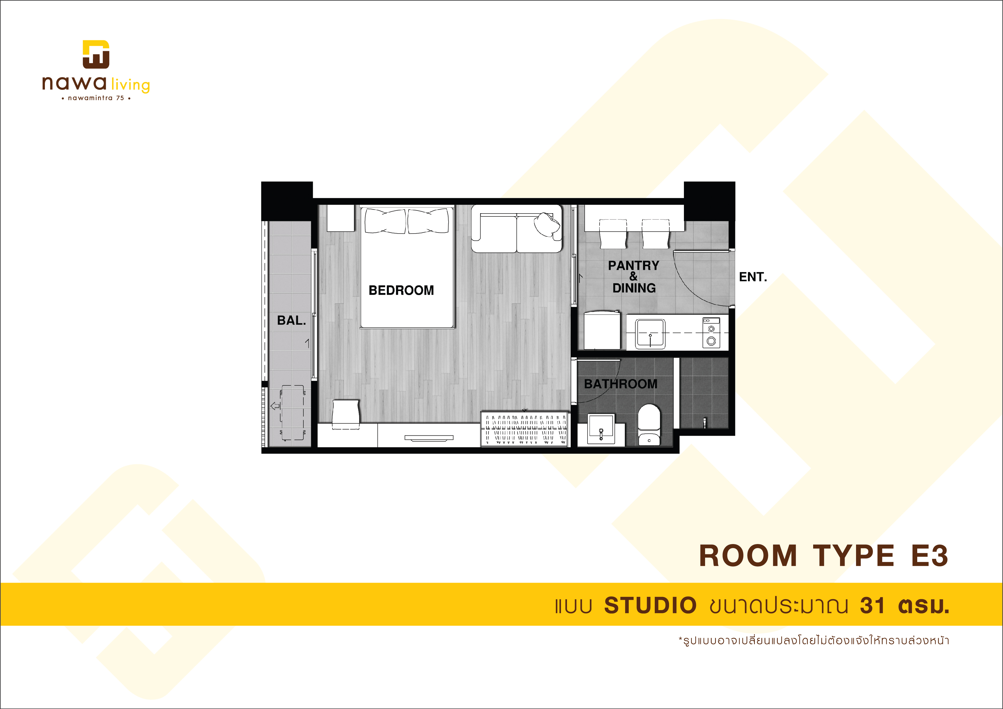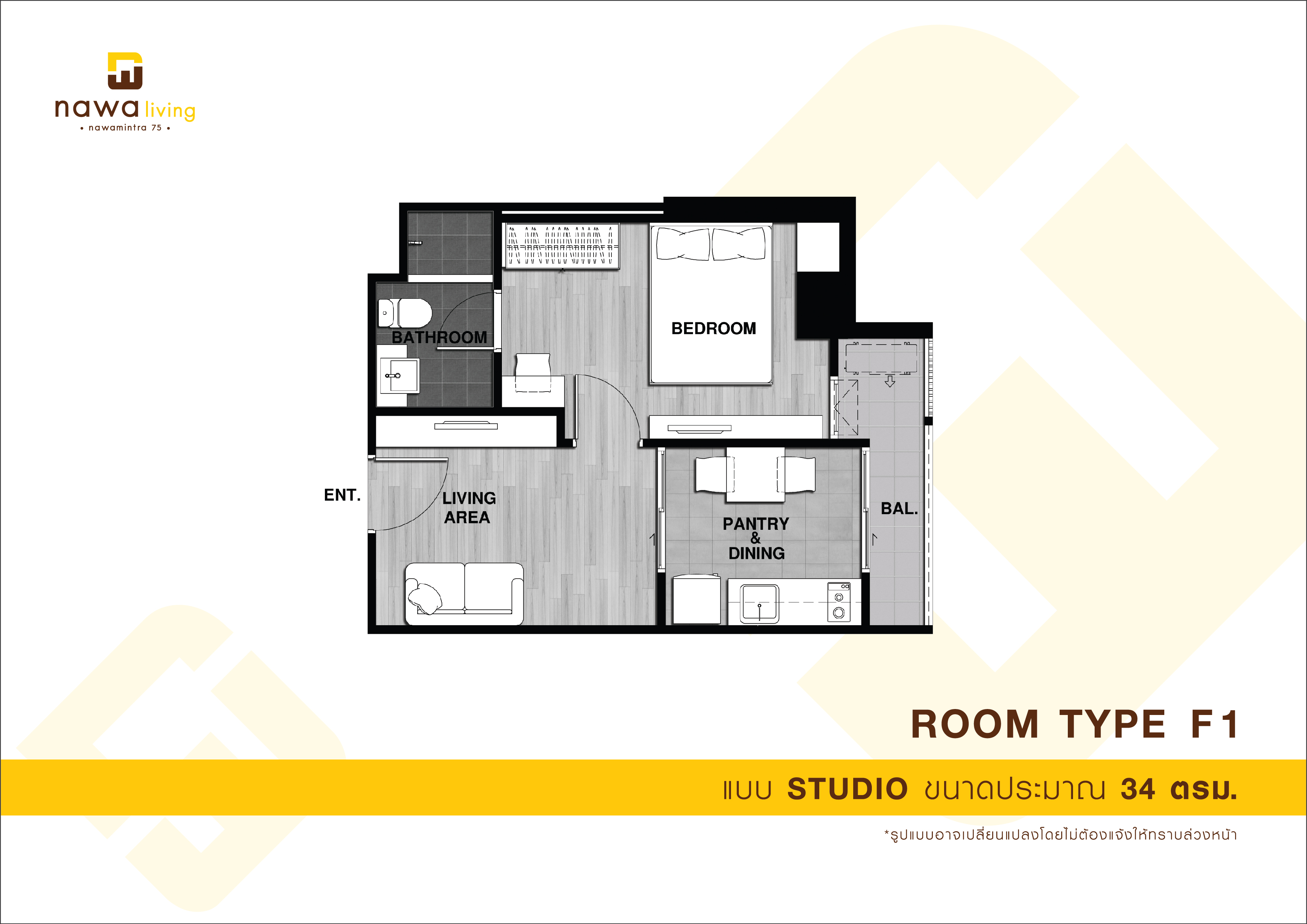 STUDIO : TYPE A ประเภทห้อง